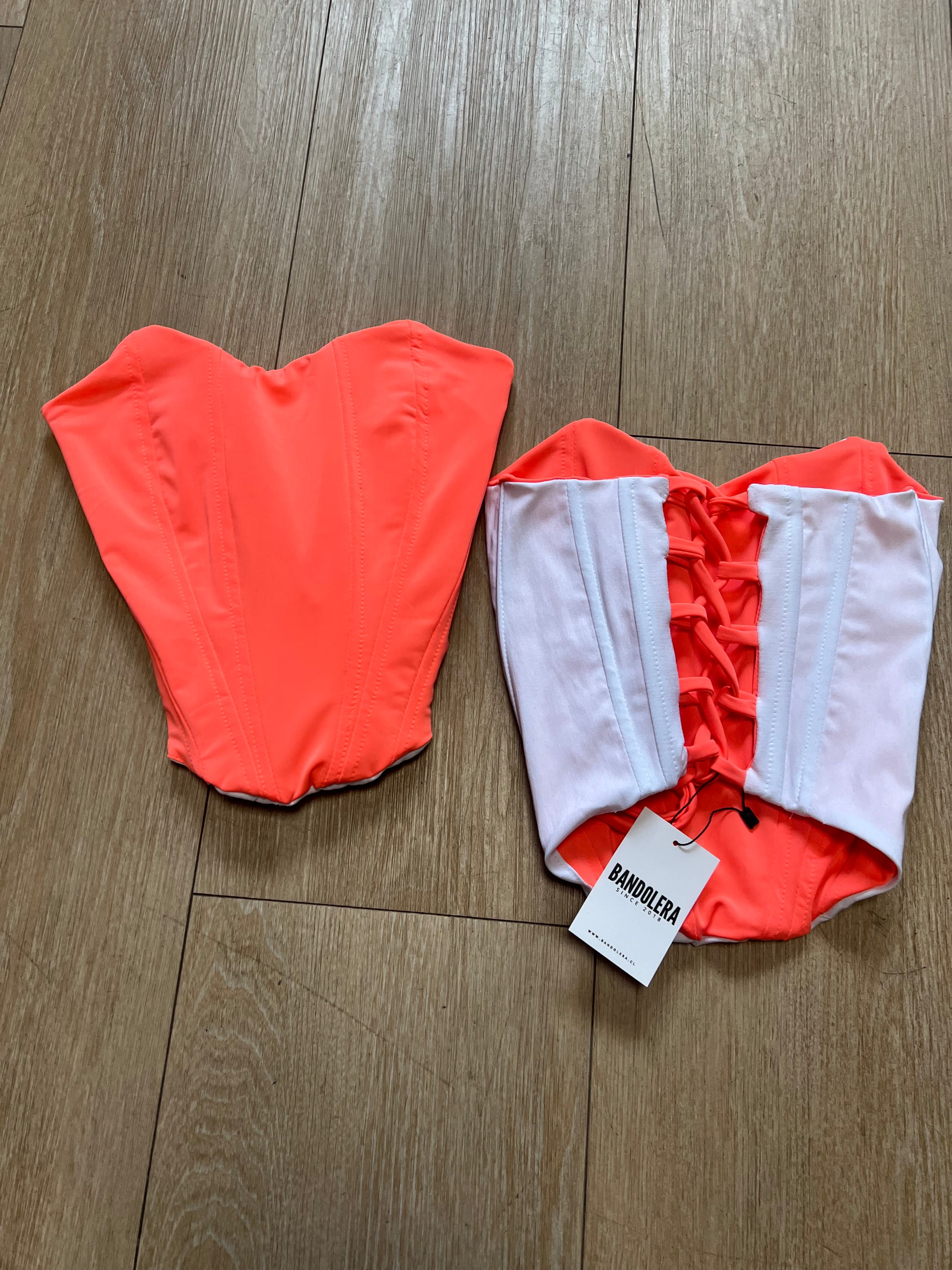 Corset reversible con cortes diagonales, posee varillas que te otorgan seguridad y comodidad ajustándose a tu cuerpo. Talla única ajustable de XS a L.