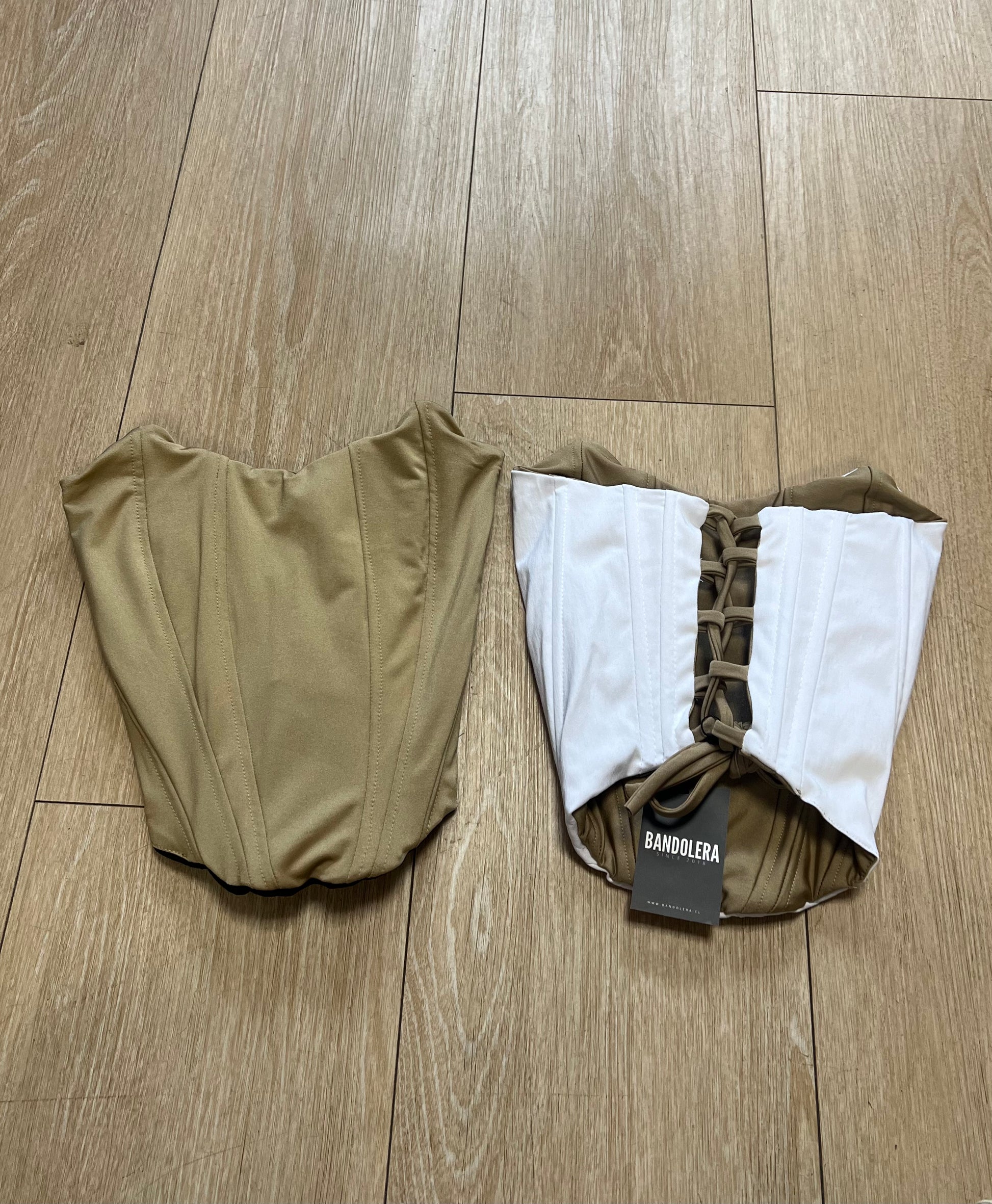 Corset reversible con cortes diagonales, posee varillas que te otorgan seguridad y comodidad ajustándose a tu cuerpo. Talla única ajustable de XS a L.
