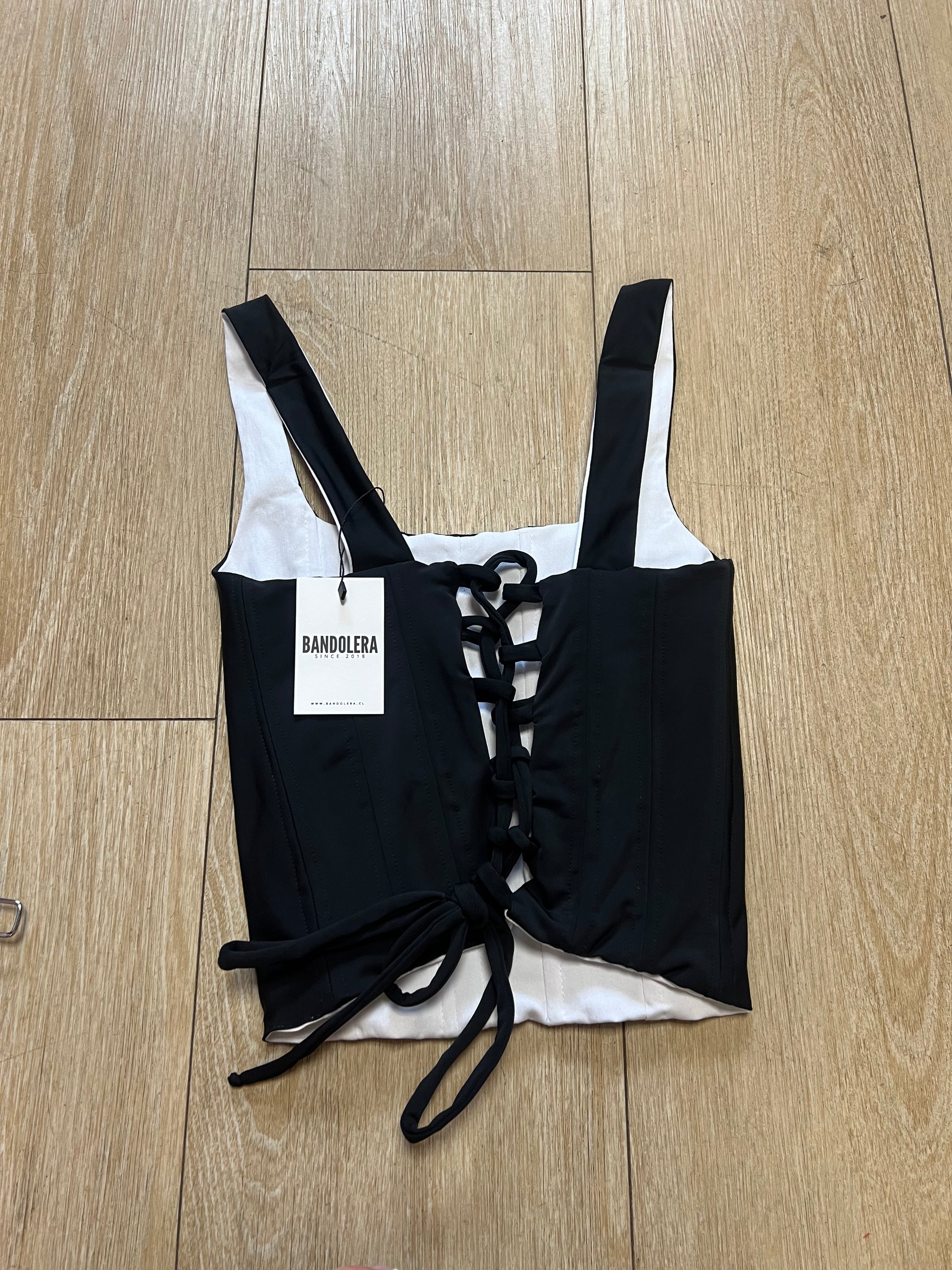 Corset reversible con tirantes, posee varillas que te otorgan seguridad y comodidad ajustándose a tu cuerpo. Talla única ajustable de XS a L.