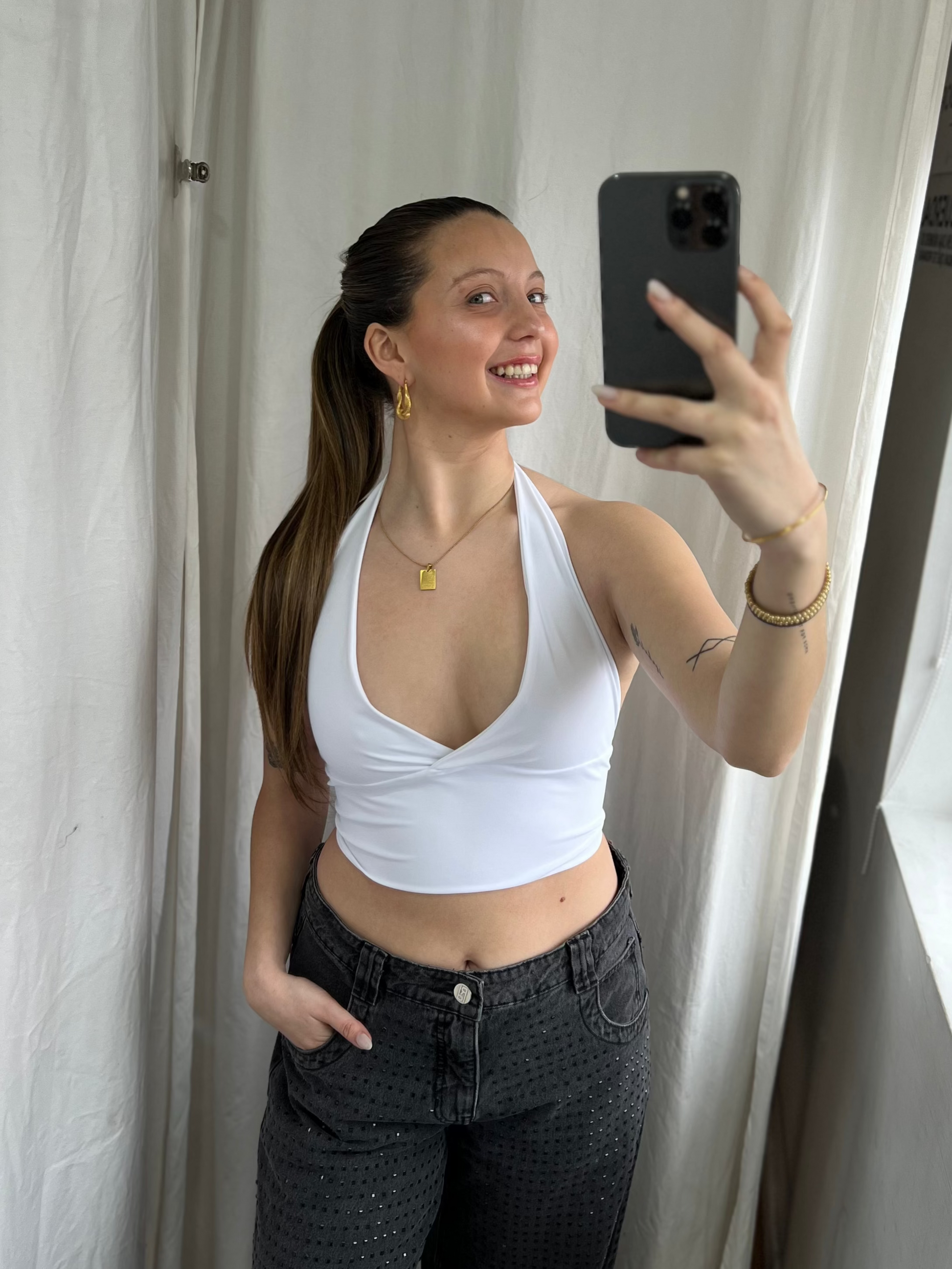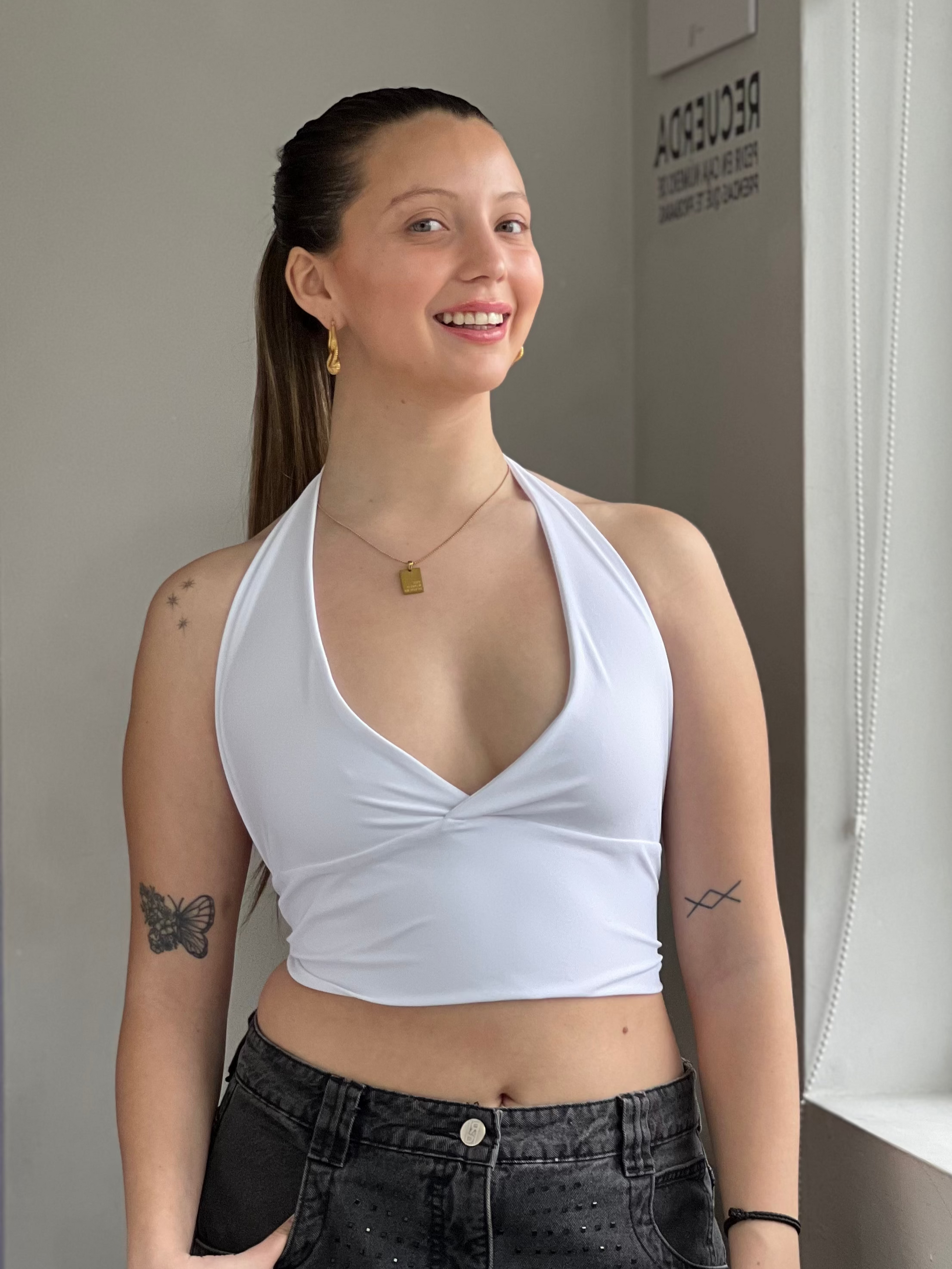 Top doble tela en lycra dupont, ajustable en la espalda y cuello.