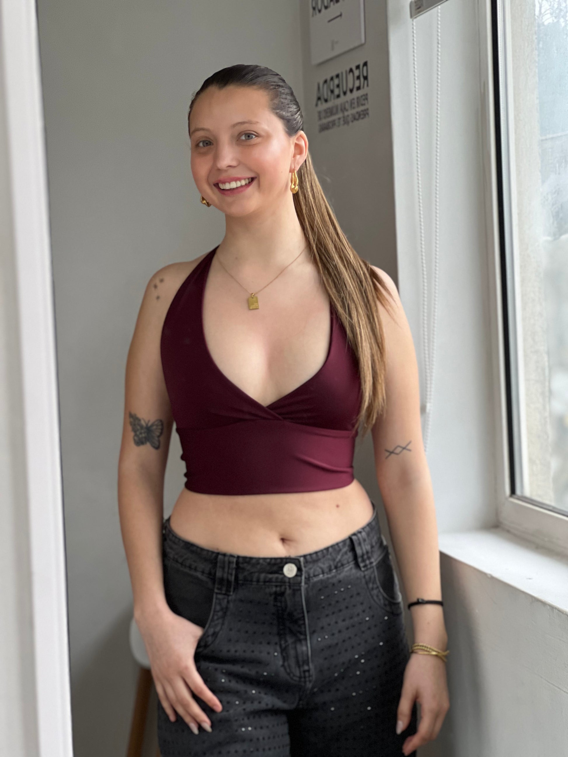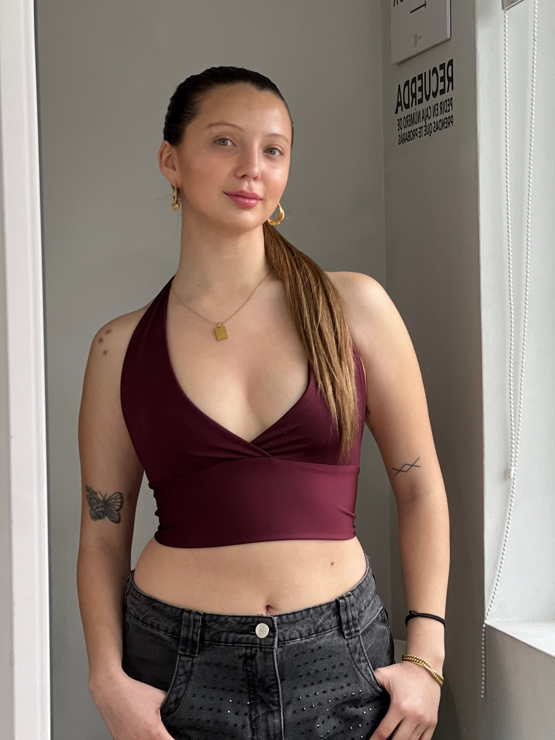 Top doble tela en lycra dupont, ajustable en la espalda y cuello.